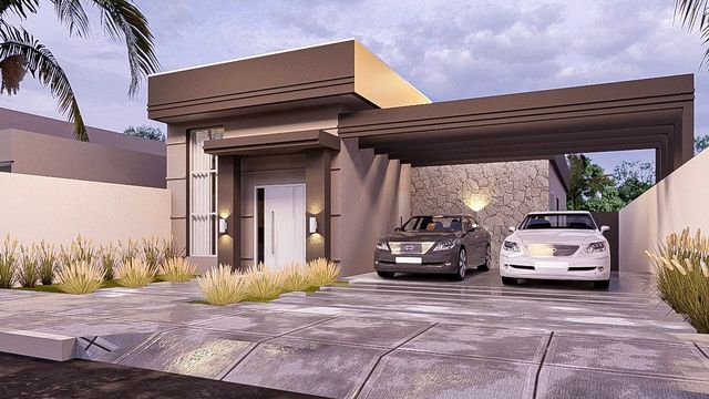Na área social há living integrado com sala de estar com pé direito duplo ,sala de jantar e cozinha, garagem para dois veículo. Já área íntima há o banheiro social, dois dormitórios e uma suíte master. Na área de lazer possui piscina com deck