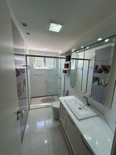 Apto de três dormitórios, sendo uma suíte, com dependência ou possibilidade de um quarto dormitório, sacada, garagem fechada com portão privativo e cozinha e churrasqueira. (salão de festas privativo)