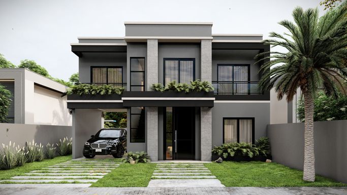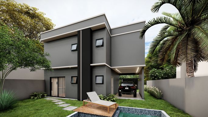 Living integrado com sala de estar, jantar e cozinha com lavanderia e lavabo, além de garagem para um veículo no pavimento térreo. No pavimento superior conta com banheiro social e 3 dormitórios, sendo 1 suíte com sacada.