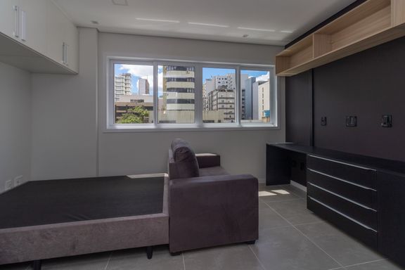Locação Apartamento mobiliado, central e com garagem. Em prédio com infra estrutura.