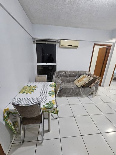 O apartamento está completo mesmo: ficam 02 ar condicionados, cozinha com móveis sob medida, refrigerador, microondas, coocktop, lava roupas, secadora de roupas, mesa com cadeiras, rack e televisão, sofá 2 lugares, bicama, cama casal com colchão, roupeiro, box de vidro no banheiro. GARAGEM COBERTA